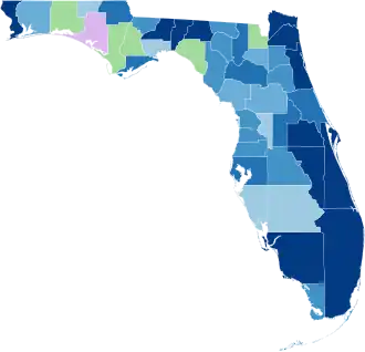 | Volusia | 808 | 83.99% | 149 | 15.49% | 5 | 0.52% | 962 |
