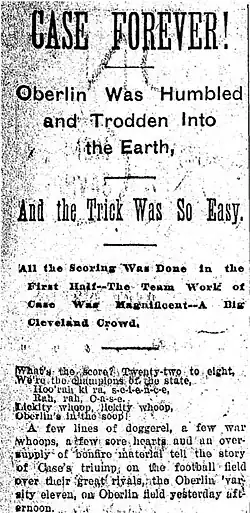 - ^ "Something About the Case Men. They Had No Coach but They Played Good Football--Seventeen Men Are on the Cleveland Reserve List". Plain Dealer. Cleveland, Ohio. December 10, 1893. p. 13.