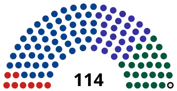 All 114 seats in the Folketing 58 seats needed for a majority |