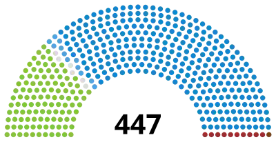The Congress of Deputies was entitled to one member per each 50,000 inhabitants, distributed among the provinces of Spain. 116 seats were distributed among 34 multi-member constituencies and elected using a partial block voting system: in constituencies electing eight seats or more, electors could vote for no more than three candidates less than the number of seats to be allocated; in those with more than four seats and up to eight, for no more than two less; and in those with more than one seat and up to four, for no more than one less. The remaining seats—329 for the 1896 election—were allocated to single-member districts and elected using plurality voting. Additionally, literary universities, economic societies of Friends of the Country and officially organized chambers of commerce, industry and agriculture were entitled to one seat per each 5,000 registered voters that they comprised, which resulted in two additional special districts.[21][22][23][24]