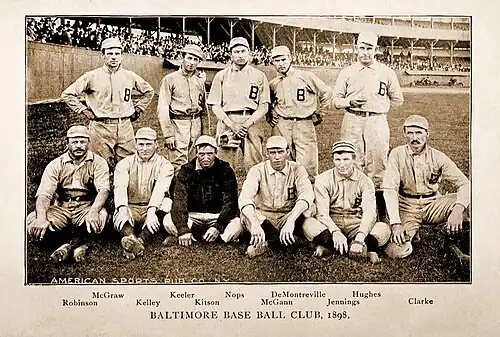 The 1898 Baltimore Orioles season was a season in American baseball. Although there was no Temple Cup after the season, the Orioles still finished second in the National League for the second straight year with a record of 96–53, 6 games behind the Boston Beaneaters. The Orioles set a Major League record which still stands, for the most batters hit by a pitch in a season, with 148.[1]