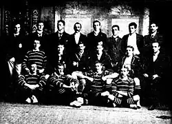 The makeup of the touring squad was described in the earliest communication of 1897 from Mullineux, as a team made of university students from his school Cambridge, as well as Oxford University, and also of international representatives.[2] Two problems faced Mullineux. The first was that the timing of the tour meant that players would need to leave Britain in early May, when the university vacations had not yet begun.[5] The second was that a long tour would preclude many of the best players from participating due to other commitments.[14] Consequently, early lists of probable touring players had few players listed that finally made the tour.[15][16][17] In the pool of potential players the following were noted:[15][16][17][18][19][20] James Byrne, Cecil Boyd, Viv Huzzey, Zimans, Ernest Fookes,[21] Lindsay Watson, M Elliott, Herbert Dudgeon, James Gowans, James Franks, J H Kipling, R Forest, Lawrence Bulger, Timoins,[22] R O Swartz, C B Marston, W Neeks (or Needs), Dr Rowland, J W Gorman, and James Couper. Among these names were several high-profile players whom recruitment attempts failed to secure. Byrne declined due to pressure of business, while Ernest Fookes was awaiting a serious medical operation.[23] The final member to join the team was Scottish international Alf Bucher, after failed approaches were made to recruit fellow Scot James Couper and Welsh wing Viv Huzzey.[20]