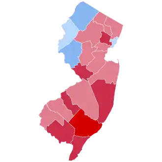 | Cape May | 2,832 | 66.60% | 1,238 | 29.12% | 49 | 1.15% | 122 | 2.87% | 11 | 0.26% | 3 | 0.07% | 1,594 | 37.49% | 4,252 |