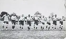 Prior to the tour a three-way series of matches between New South Wales, Queensland and New Zealand was organised as a basis of selection for the tour.[4] The New South Welshmen dominated the touring side, with four New Zealanders and only one Queenslander selected. However counted amongst the New South Welshmen was Con Sullivan, who had moved to Australia from New Zealand a few years before. Due to family and business commitments, rugby league great Dally Messenger declined to tour with the 1911–12 Kangaroos.[5] His friend and teammate Sandy Pearce also chose not to go.[6] Chris McKivat who had captained the 1908 Wallabies to Olympic Gold was at age 32 a natural selection as tour captain. The Heads/Middleton reference describes McKivat as being revered on that tour – a magnificent general, tough, durable and an inspiration to the men around him. It quotes Johnny Quinlan the tour co-manager "He always set a splendid example in conduct and training – a natural leader"[7] Tour vice-captain was Paddy McCue. Tour managers were Charles H Ford and John Quinlan. The team sailed to England on the RMS Orvieto. The tourists were paid £4/5/ per week and received a bonus of £178 each.[8]