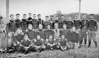 Much of the pre-season had been spent focusing on the development of a quarterback to replace Shorty McMillan, who had announced in late July that he intended to give up college and accept a position in his father's business.[12] However, Coach Yost ultimately persuaded McMillan to return to Michigan, and he joined the team on October 10, 1911—shortly after the first game of the season.[13] The team also lost the services of Arthur Cornwell, who had been selected by Yost as the All-Western center in 1910, due to academic ineligibility.[3]