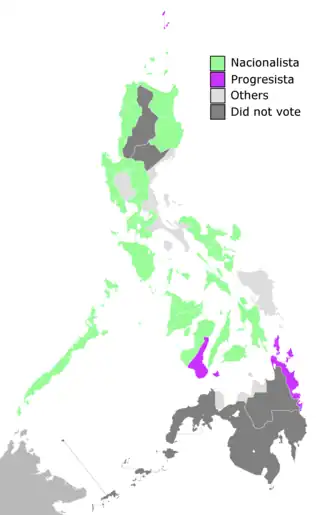 Parties that won a plurality of votes in each province. Results for local offices are also included as a separate tally for the Philippine Assembly was not provided. |