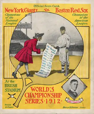 - ^ "1912 World Series Game 7 – New York Giants vs. Boston Red Sox". Retrosheet. Retrieved September 13, 2009.