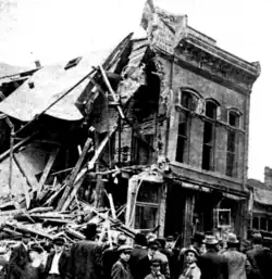 Union hall of the Western Federation of Miners local at Butte, Montana, after its destruction by dissident miners on 23 June 1914.
