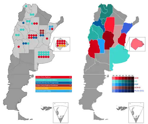 Election day, April 2, handed an unexpectedly large victory to Yrigoyen, who still had to await the results from the electoral college (which met in July). The dissident Santa Fe UCR had drained a significant number of electors from the official ticket, and Yrigoyen obtained but 133 of the body's 300 electors. Numerous Democratic Progressives, moreover, became faithless electors - pledging their support to the Conservative Party. Santa Fe's UCR, however, resorted to the same tactic, allowing Yrigoyen its 19 electors and making the patient activist for voter rights the first democratically elected President of Argentina.[3]