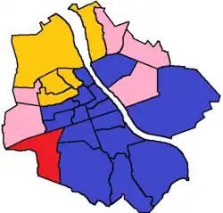 The city was divided into 52 electoral districts.[10] The 2,345 registered voters of the Third Curia were not divided into electoral districts.