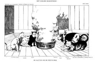 After the formation of the cabinet, Kuyper commented on it in De Standaard, though he refrained from launching a direct attack.[16] The narrow majority led to several ministerial crises, ultimately resulting in the cabinet's collapse in 1921. Following another round of cabinet formation, it was reconstructed and continued in office until shortly after the general election held on 5 July 1922.