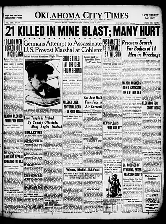 ![]() Front page of the Oklahoma City times July 18, 1919 | |