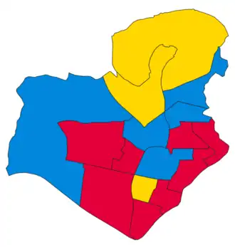 | Party | Votes | Seats | Full Council | |||||||