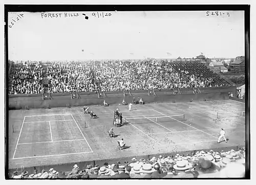 The 1920 U.S. National Championships (now known as the US Open) was a tennis tournament that took place on the outdoor grass courts at the West Side Tennis Club, Forest Hills in New York City and the Philadelphia Cricket Club in Chestnut Hill, Philadelphia. The men's tournament, held in New York City, ran from August 30 until September 6, 1920, while the women's event in Chestnut Hill was held from September 20 through September 25, 1920. It was the 40th staging of the U.S. National Championships and the third Grand Slam tennis event of the year.