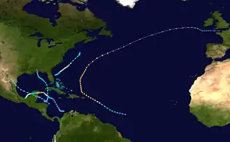 - ^ Chronological List of All Hurricanes: 1851 – 2018. Atlantic Oceanographic and Meteorological Laboratory (Report). National Oceanic and Atmospheric Administration. July 2019. Retrieved August 8, 2019.