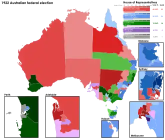 3. ^ Hughes' seat prior to the election was Bendigo (Vic.). He ran for the New South Wales seat of North Sydney and won.