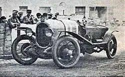 Chenard-Walcker was a major Parisian automotive company, established in 1899 and one of the city's biggest suppliers of taxis. They had a close relationship with coachbuilding company FAR who built their bodywork, led by André Lagache and Raymond Glaszmann (both keen racers). Lucien Chenard, son of the founder, had set up a works racing team in 1921 with the company test-driver René Léonard. Active in post-war racing they sent a trio of cars with the latest Torpédo bodystyle from FAR. Two had the new U3 3-litre engine that put out 90 bhp, driven by Léonard with Lagache, and Glaszmann with Fernand Bachmann. The third car, with a less powerful U2 engine was run by Bachmann's brother Raoul with veteran Christian Dauvergne.[2] They were supported by a well-drilled pit crew to assist the drivers.[15][8]