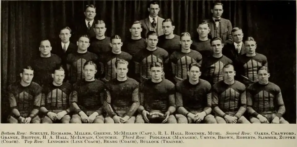The 1923 college football season saw several teams finish their seasons unbeaten and untied. As such, numerous schools claim a national championship for the 1923 season. Illinois (coached by Bob Zuppke) and Michigan (coached by Fielding "Hurry-Up" Yost), both members of what is now the Big Ten Conference, finished with records of 8–0 and were selected as national champion by multiple selectors. Illinois featured break-out star Red Grange.[1][2] Ivy League teams Yale and Cornell also had undefeated seasons. Cornell was selected as national champion by one selector.