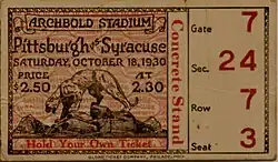 - ^ "Bogus Tickets Crowd Stadium". The Pittsburgh Press. October 25, 1930. p. 1 – via Newspapers.com.