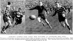 On March 26 the Papakura Rugby League club was formed with 60 players enrolling.[19] They applied to the Papakura Town Board for use of the reserve at Papakura. This was granted as the entire club had switched over from Rugby Union meaning they had no competition for the field. The council said that if a representative rugby game was being played on the field then the league team could use Prince Edward Park (which later became their home ground and remains so to this day).[20] On Saturday, 18 April they played a practice match with Mount Wellington at Papakura.[21] The match was won by Mount Wellington by 8 points to 5. Papakura's points came from an unconverted try to Johnstone, and I. Wilson kicked a penalty goal.[22] They held their first social on the evening of Wednesday 22 April at the Paragon Theatre.[23]