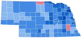 With every county in the state trending Democratic, as of the 2020 presidential election, this election marks the best ever Democratic presidential performance in Nebraska and the only time in history the state has given more than sixty percent of its vote to a Democrat in a presidential election.[3] 1932 constitutes the last occasion that Antelope, Arthur, Brown, Furnas, Garden, Garfield, Hamilton, Hooker, Loup, McPherson, Otoe, Rock, Valley, or York counties have voted for a Democratic presidential candidate.[4][5] This was also the last time that Nebraska voted more Democratic than the nation overall.