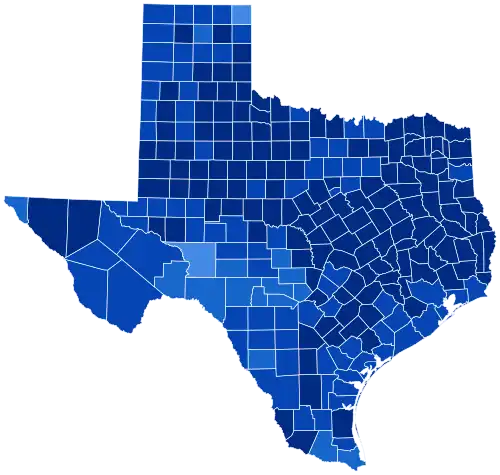 Roosevelt defeated Hoover in Texas by a landslide margin of 76.71%. In this era, Texas was a one-party Solid South state dominated by the Democratic Party, but Roosevelt's performance was overwhelming even relative to the many prior Democratic landslides, and remains the largest blowout victory by any presidential nominee in the state. Furthermore, Roosevelt carried every single county with more than 65% of the vote. This election constitutes the only time in history that a presidential candidate has swept all 254 counties in the state.[a]