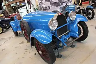 There were five big Bugattis entered this year. Racing journalist Roger Labric got a degree of works support, with two mechanics from Molsheim and driver Pierre Veyron. His was the biggest Bugatti – the supercharged 5-litre Type 50 run by the late Guy Bouriat and Albert Divo in 1931.[11] There were three Type 55 cars entered, with their 2.3-litre supercharged engines. That of the Équipe Braillard did not arrive, while the others were of privateers Charles Brunet and Victor Bayard.[12] There was also a privately entered 3-litre Type 44, a popular touring model but only capable of 80 bhp. It was not expected to be among the front-runners, even among the smaller British sports cars, but it would be reliable with an engine not over-stressed.[12]