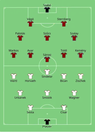 An extremely tough game prevented the two teams from truly showing the technical skills they possessed. Austria took an early lead with Johann Horvath, who finished a well-organised team move. Austria doubled their lead in the early stages of the second half. Shortly after, Hungary got one back thanks to a penalty caused by Karl Sesta. The match hung in the balance until Hungary lost two players: Imre Markos was red carded and István Avar got injured. After that, Austria comfortably cruised to the victory.[2]