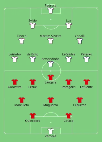 Brazil – who had only kept Carvalho Leite from the squad participating in the previous edition of the World Cup – were outclassed by Spain in the first half, who scored thrice. In the second half, Spanish players played more complacently. Leônidas pulled one back for Brazil, then he scored again moments later, but the goal was disallowed for offside. Later, Ricardo Zamora saved a penalty from Waldemar de Brito.[2]