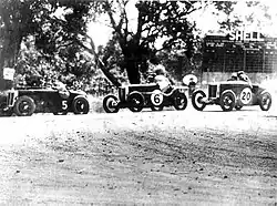 3. ^ The race report in The Argus states that the race distance was 100 miles and the lap length was 6½ miles therefore it has been assumed that the race was contested over 16 laps.