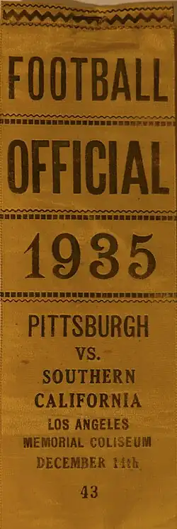 - ^ "Play-By-Play Story of Pitt's 12–7 Victory Over Trojans". The Los Angeles Times. Los Angeles, California. December 15, 1935. p. Part I-23. Retrieved April 28, 2022 – via Newspapers.com.