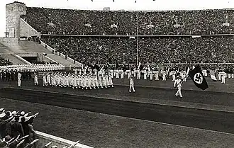 The Opening Ceremony of the 1936 Summer Olympics was the official opening ceremony held on August 1, 1936, at the Reichssportsfeld in Berlin, Germany.[1][2] It was attended by the German Führer und Reichskanzler Adolf Hitler, as well as several high-profile Nazi figures.[3][4]