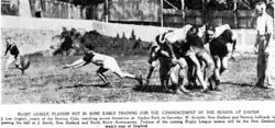 It was organised that the Balmain club would tour Auckland playing three matches over the Easter weekend before returning to Australia to begin their season.[13] A week later however the club informed the authorities in New Zealand that they would not be able to come as "several players were not available".[14] The Auckland Rugby League then engaged in a “lengthy radio-telephone conversation with Australia” on February 15 that left them “practically certain that one of the leading club teams of Sydney will play at Carlaw Park at Easter in lieu of Balmain”.[15] Ray Stehr of Eastern Suburbs had also been reported as saying that he could get together a very strong composite team made up of Eastern Suburbs and Balmain players to tour.[15] The team was eventually granted permission to tour and four matches were arranged for Carlaw Park against Marist, Richmond, Mount Albert, and Manukau. The touring side was particularly strong and included good players from several clubs: Jim Sharman, J. Robinson (W. Suburbs), Frank Hyde, Jim Quealey, Jack Redman, Frank Griffiths, George Watt (Balmain), Roy Thompson (N. Sydney), Don Manson (S. Sydney), Aub Mitchell (Canterbury-Bankstown), Fred Tottey, Rod O'Loan, Laurie Pickup, Jack McCarthy, Jack Arnold, Harry Pierce, and Ray Stehr (E. Suburbs).[16] The tour raised £300 for the injured players fund.[17]