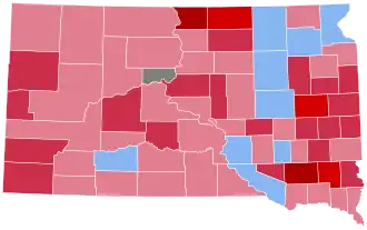 South Dakota would prove to be Willkie's largest win of any state, as he carried the state by 14.82 percentage points, despite Roosevelt carrying it by 12 percentage points four years prior.[4] Additionally, with 57.41% of the popular vote, South Dakota was Willkie's strongest state in the 1940 election in terms of popular vote percentage.[5]