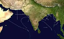 The years between 1940 and 1949 featured the 1940s North Indian Ocean cyclone seasons. Each season was an ongoing event in the annual cycle of tropical cyclone formation. The North Indian tropical cyclone season has no bounds, but they tend to form between April and December, peaks in May and November. These dates conventionally delimit the period of each year when most tropical cyclones form in the northern Indian Ocean. Below are the most significant cyclones in the time period. Because much of the North Indian coastline is near sea level and prone to flooding, these cyclones can easily kill many with storm surge and flooding. These cyclones are among the deadliest on earth in terms of numbers killed. On 27 April 1949, India Meteorological Department (IMD) became a member of the World Meteorological Organization after independence.[1]