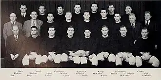 End Elmer Engel was selected as the team's most valuable player.[3] Guard Alex Agase received second-team honorshonors from the United Press on the 1942 All-Big Ten Conference football team.[4]