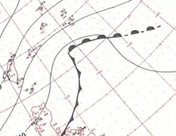 Short-lived storm moving quickly to the northeast.[3] There are many indications that this system was not tropical, such as attached fronts throughout its entire noted life.[4]