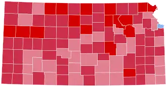 Kansas was won by Governor Thomas E. Dewey (R–New York), running with Governor John Bricker, with 60.25 percent of the popular vote, against incumbent President Franklin D. Roosevelt (D–New York), running with Senator Harry S. Truman, with 39.18 percent of the popular vote.[3][4] Dewey's margin was the largest against Roosevelt in any state in any of the four elections that he contested, despite carrying the state by comfortable margins in both 1932 and 1936.[5] The 104 counties (all except Wyandotte) that Roosevelt lost is the most he lost in any state during his four elections to the White House.