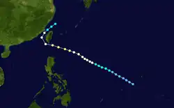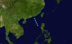 A tropical storm was tracked on November 1 to the northwest of the Marianas. It moved to the west, before making landfall on Tayabas (now Quezon) in the Philippines. It was last noted on November 4 over modern-day Aurora Province. The damage is unknown.