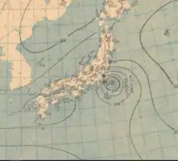 In Japan, Typhoon Ida is called Makurazaki Typhoon. It was the strongest typhoon to hit Kyushu on record, with a minimum sea-level pressure of 916.1 hPa (27.05 inHg) observed on the land and a maximum wind gust of 62.7 metres per second (140 mph), which was recorded at a weather station in Makurazaki.[9] More than 2,000 people were killed in the Hiroshima Prefecture after heavy rains brought by a weakening Ida caused severe landslides.[10]