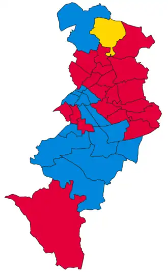 | Labour Party | 93,691 (45.6%) | 20 (55.6%) | 20 / 36