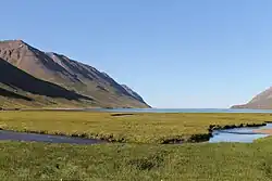 Héðinsfjörður seen from its headwaters; Hestfjall, on which the DC-3 crashed, is on the left. | |