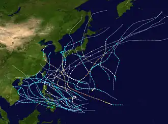 The 1949 Pacific typhoon season has no official bounds; it ran year-round in 1949, but most tropical cyclones tend to form in the northwestern Pacific Ocean between June and December. These dates conventionally delimit the period of each year when most tropical cyclones form in the northwestern Pacific Ocean.