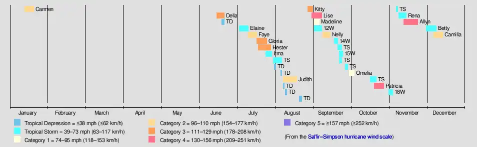 Camilla, the final significant storm of the 1949 typhoon season was the ninth tropical cyclone to intensify in the Yap-Palau area. Similar to other late season storms; Camilla moved west northwestward across the Philippines at an average speed of 12 knots. Here, Camilla departed from the climatological tracks curving northward across northern Luzon, weakening while crossing the mountainous area. Camilla then continued to move northeastward along the polar though, accelerating rapidly and becoming extratropical just east of Okinawa.[17]