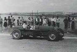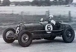 The race utilised a handicap start with cars commencing progressively, slowest through to fastest, at timed intervals.[2] The declared winner of the Grand Prix however, was the driver with the fastest elapsed race time, regardless of handicap.[2] All other official awards were based on the handicap results, with an additional trophy awarded to the handicap winner and prize money paid for the first nine handicap places.[1] Doug Whiteford, driving a Ford V8 Special, known as 'Black Bess', won his first Australian Grand Prix, completing the race distance almost three minutes faster than Rupert Steele, driving an Alfa Romeo.[2] Jim Gullan, driving an Oldsmobile-powered Ballot Special recorded the third fastest race time and was also the official handicap winner.[2]