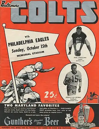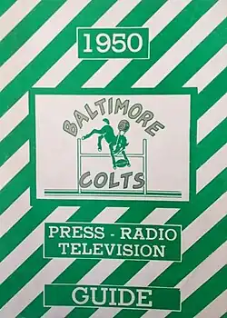 - ^ Baltimore Colts vs. Philadelphia Eagles, Sunday, October 15th, Memorial Stadium. Baltimore, MD: Baltimore Colts Football Club, Inc., 1950; pp. 10–12.
