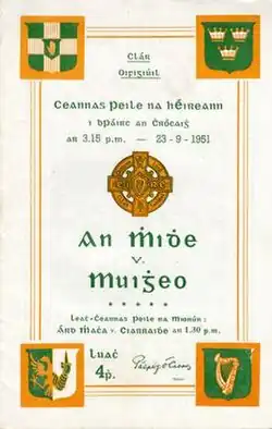 This was Mayo's second consecutive All-Ireland SFC title.[2] They have not won an All-Ireland SFC title since. It is said that a legendary curse overshadows Mayo football since 1951 – see Sports-related curses and Mayo county football team#Curse.[3][4][5][6]