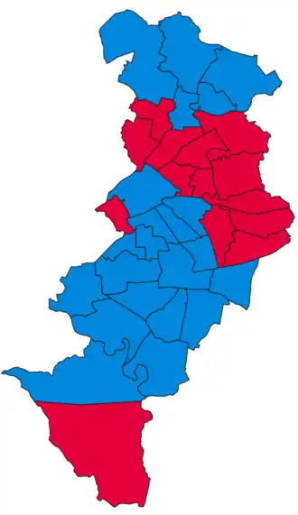 | Labour Party | 86,558 (41.3%) | 14 (38.9%) | 14 / 36