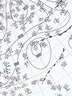 On February 2, a non-frontal low formed in the western Caribbean Sea two months after the end of the hurricane season. It moved quickly north-northwestward and acquired gale-force winds as it brushed the northern coast of Cuba. Early on February 3, the storm struck Cape Sable, Florida and quickly crossed the state.[4] The Miami National Weather Service office recorded a wind gust of 68 mph (109 km/h) during its passage.[5] The winds damaged windows and power lines,[6] catching residents and tourists off-guard.[7] The cyclone also dropped 2–4 inches (51–102 millimetres) of precipitation along its path, causing crop damage in Miami-Dade County.[5]