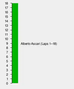 Ascari, who had taken his fourth consecutive victory, along with a fourth consecutive fastest lap, had now scored the maximum of 36 points for the season, as only a driver's four best results counted. As a result, he clinched the world championship, making him the first driver to win the championship with two races left to go.[1] The date was 3 August, the earliest anyone would claim the Championship until Jim Clark seized the crown on 1 August in 1965, also at the Nürburgring. Ascari's teammates, Taruffi and Farina, remained in second and third, respectively, in the Drivers' Championship, while Swiss driver Fischer's second podium of the season raised him up to fourth in the standings.